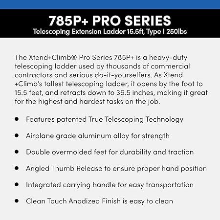 The xtend climb pro series 785p is a heavy duty telescoping ladder used by thousands of commercial contractors and serious do it yourselves.